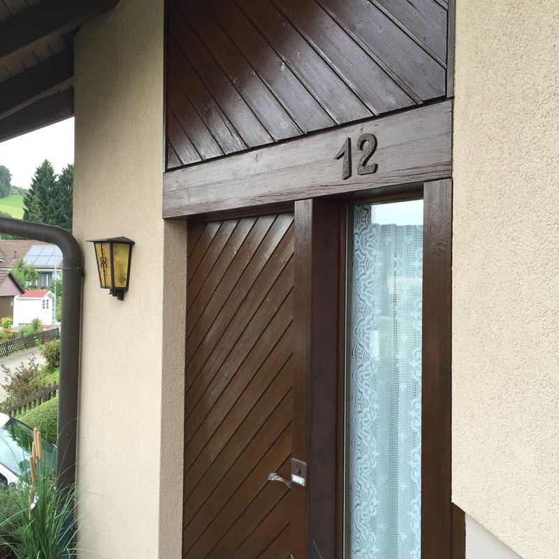 Es gibt nicht nur extreme Fälle wie dieses Beispiel zeigt. Dieser Hausbesitzer lässt alle drei Jahre die Front mit einer Holzlasur auffrischen.